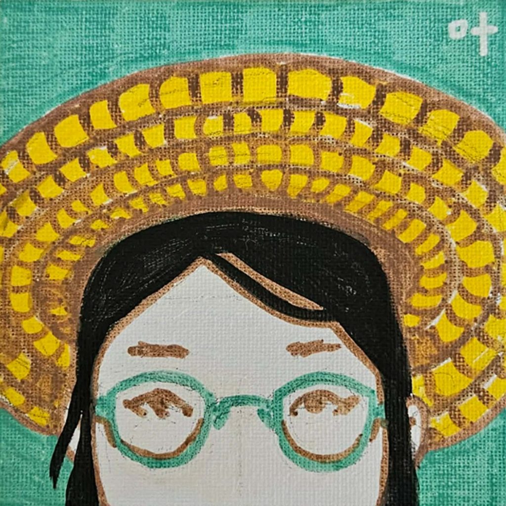 Depicting whimsical folk and botanical motif while telling the story of home in the manner of a collage is Doreen de Asis Dofitas’ mixed media on canvas entitled In Gentle Light.